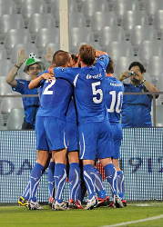 Evento: Qualificazioni europei italia-far oer 5-0 7-9-2010; Argomento: Calcio; Periodo: 2010/11; Categoria: ITALIA; Soggetto: SQUADRA; Nazione: ITALIA; Descrizione: ESULTANZA; Città: FIRENZE;