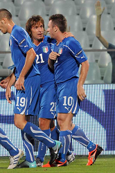 Evento: Qualificazioni europei italia-far oer 5-0 7-9-2010; Argomento: Calcio; Periodo: 2010/11; Categoria: ITALIA; Soggetto: SQUADRA: ANDREA PIRLO ANTONIO CASSANO ALBERTO GILARDINO; Nazione: ITALIA; Descrizione: ESULTANZA; Città: FIRENZE;