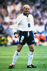 Evento: Campionati europei euro 1996; Argomento: Calcio; Periodo: 1995/96; Categoria: INGHILTERRA; Soggetto: PAUL GASCOIGNE, England, EURO 1996 England; Nazione: Studio Buzzi; Descrizione: AZIONE GESTI; Luogo: STADIO; Città: LONDRA;