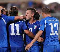 Evento: Qualificazioni europei italia-far oer 5-0 7-9-2010; Argomento: Calcio; Periodo: 2010/11; Categoria: ITALIA; Soggetto: SQUADRA CON ANTONIO CASSANO; Nazione: ITALIA; Descrizione: ESULTANZA; Città: FIRENZE;