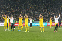 Evento: Qualificazioni europei 2020 ucraina-portogallo 2-1; Argomento: Calcio; Periodo: 2019/20; Categoria: UCRAINA; Soggetto: SQUADRA; Descrizione: ESULTANZA; Luogo: STADIO; Città: KIEV;
