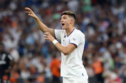 Evento: Ligue 1 2022-23 olympique marsiglia-reims 4-1; Argomento: Calcio; Periodo: 2022/23; Categoria: OLYMPIQUE MARSIGLIA MARSEILLE; Soggetto: LEONARDO BALERDI, Olympique Marseille, Ligue 1, Olympique Marseille vs Stade de Reims 4-1, 07/08/2022, Marseille, Azione, Action, Single shot; Nazione: Studio Buzzi; Descrizione: AZIONE GESTI; Città: MARSIGLIA;