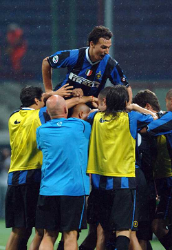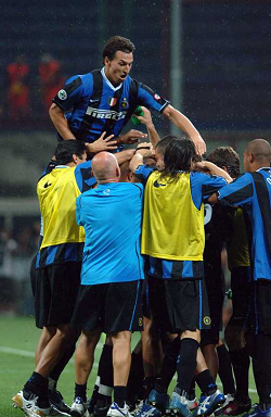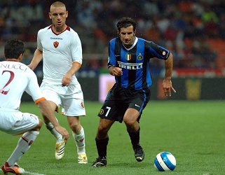 Evento: Supercoppa di lega tim inter-roma 4-3; Argomento: Calcio; Periodo: 2006/07; Categoria: ROMA; Soggetto: SIMONE DE ROSSI, CHRISTIAN CHIVU, SIMONE PERROTTA, PHILIPPE MEXES; Nazione: FRANCIA ITALIA ROMANIA; Descrizione: ESULTANZA; Luogo: STADIO; Città: MILANO;
