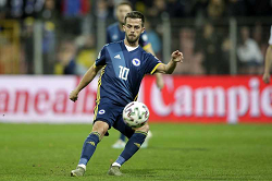 Evento: Campionati europei 2008 italia-spagna 2-4 dopo i rigori; Argomento: Calcio; Periodo: 2007/08; Categoria: ITALIA; Soggetto: SQUADRA DURANTE INNO NAZIONALE: Buffon, Panucci, Chiellini, Cassano, Grosso, Perrotta, Aquilani, De Rossi, Ambrosini, Zambrotta, Toni.; Nazione: ITALIA; Descrizione: POSA; Luogo: STADIO; Città: VIENNA;