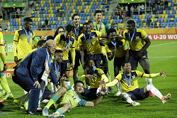 Evento: Campionato mondiale u-20 finale 3 posto italia-ecuador 0-1; Argomento: Calcio; Periodo: 2018/19; Categoria: ECUADOR U-20; Soggetto: SQUADRA, Team Group, Celebrating, Ecuador U20, U-20 World Cup, Poland 2019, Italy-Ecuador; Nazione: Studio Buzzi; Descrizione: ESULTANZA; Luogo: STADIO; Città: GDYNIA POLONIA;