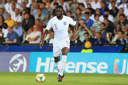 Evento: Campionati europei under 21 2019 inghilterra-francia 1-1; Argomento: Calcio; Periodo: 2018/19; Categoria: INGHILTERRA UNDER 21; Soggetto: European Under 21 Championship 2019, 18-06-2019, England-France 1-1, FIKAYO TOMORI; Descrizione: AZIONE; Luogo: STADIO; Città: CESENA;