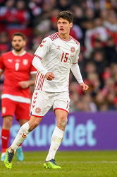 Evento: 2021-22 nazionali amichevole danimarca-serbia 3-0; Argomento: Calcio; Periodo: 2021/22; Categoria: DANIMARCA; Soggetto: Friendly Match 2021-22, Denmark-Serbia 3-0, JANNIK VESTERGAARD; Descrizione: AZIONE; Città: COPENHAGEN ;