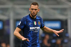 Evento: Serie a 2021-22 inter-roma 3-1; Argomento: Calcio; Periodo: 2021/22; Categoria: INTER; Soggetto: STEFAN DE VRIJ, Inter, Serie A, Inter vs Roma 3-1, Milano; Nazione: Studio Buzzi; Descrizione: AZIONE PRIMO PIANO GESTI; Luogo: STADIO; Città: MILANO;
