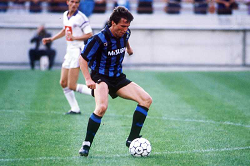 Evento: Stagione 1988-89 amichevole inter-anderlecht; Argomento: Calcio; Periodo: 1988/89; Categoria: INTER; Soggetto: LOTHAR MATTHAEUS; Descrizione: AZIONE; Luogo: STADIO; Città: MILANO;