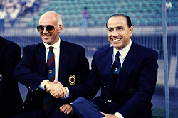 Evento: Calcio 1989-90 amichevole monza-milan 1-1; Argomento: Calcio; Periodo: 1989/90; Categoria: MILAN; Soggetto: ARRIGO SACCHI, SILVIO BERLUSCONI, AC Milan, Friendly match, Monza vs Milan 1-1, Monza; Nazione: Studio Buzzi; Descrizione: POSA; Luogo: STADIO; Città: MONZA;