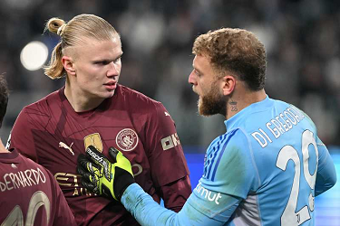 ERLING HAALAND, MICHELE DI GREGORIO, Champions League 2024-25, Juventus-Manchester City 2-0, contrasto, gesti