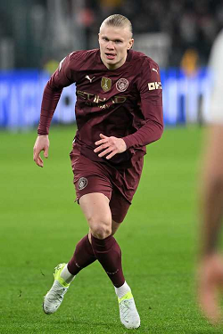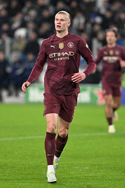 ERLING HAALAND, Champions League 2024-25, Juventus-Manchester City 2-0, azione, action, single shot