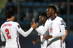 Evento: Qualificazioni mondiali san marino-inghilterra 0-10; Argomento: Calcio; Periodo: 2021/22; Categoria: INGHILTERRA ENGLAND; Soggetto: FIFA World Cup Qualifying Round, San Marino-England 0-10, TRENT ALEXANDER ARNOLD, TAMMY ABRAHAM; Descrizione: ESULTANZA; Luogo: STADIO; Città: SAN MARINO;