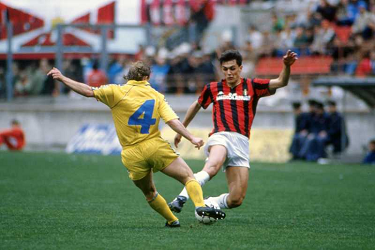 PAOLO MALDINI, Milan, Serie A, 1988-89, Milan vs Hellas Verona 1-1, 19-03-1989, Contrasto, Action