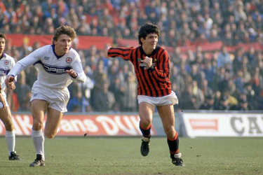 RENZO CONTRATTO, Fiorentina, PAOLO ROSSI, Milan, Serie A, 1984-85, Milan vs Fiorentina 1-0, 19-01-1986, Azione, Contrasto, Action, Single shot