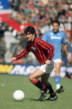 PAOLO ROSSI, Milan, Serie A, 1984-85, Milan vs Napoli 1-2, 13-04-1986, Azione, Contrasto, Action, Single shot
