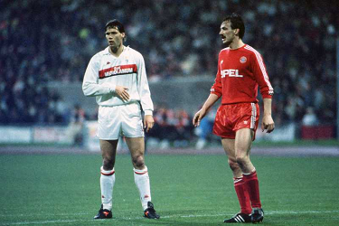 MARCO VAN BASTEN, Milan, JURGEN KOHLER, Bayern Monaco, European Cup, Semi Final, 1989-90, Bayern Munchen vs Milan 2-1, 18-04-1990, Azione, Action, Single shot, Contrasto