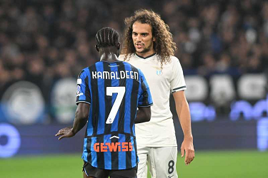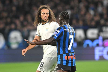 Discussione tra MATTEO GUENDOUZI, Lazio, e KAMALDEEN SULEMANA, Atalanta, Serie A 2025-26, Atalanta-Lazio 0-0, azione, action, contrasto