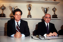 Evento: Presentazione; Argomento: Calcio; Periodo: 1991/92; Categoria: milan; Soggetto: capello fabio galliani adriano; Nazione: italia; Descrizione: borghese; Luogo: interno;