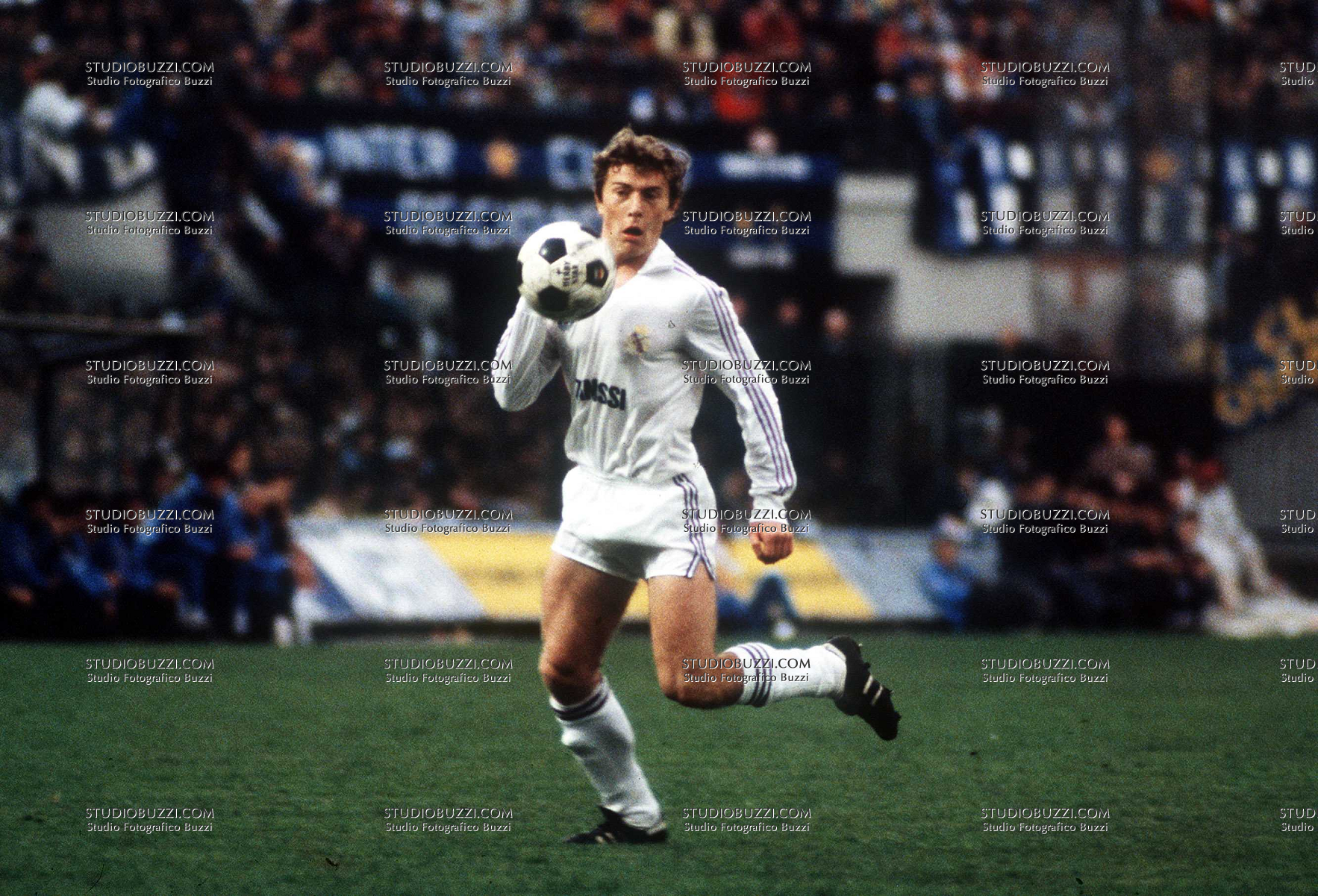 Evento: Coppa u.e.f.a. 1984/85 inter-real madrid; Argomento: Calcio; Periodo: 1984/85; Categoria: REAL MADRID; Soggetto: EMILIO BUTRAGUENO ; Nazione: SPAGNA; Descrizione: AZIONE; Luogo: STADIO; Città: MILANO;