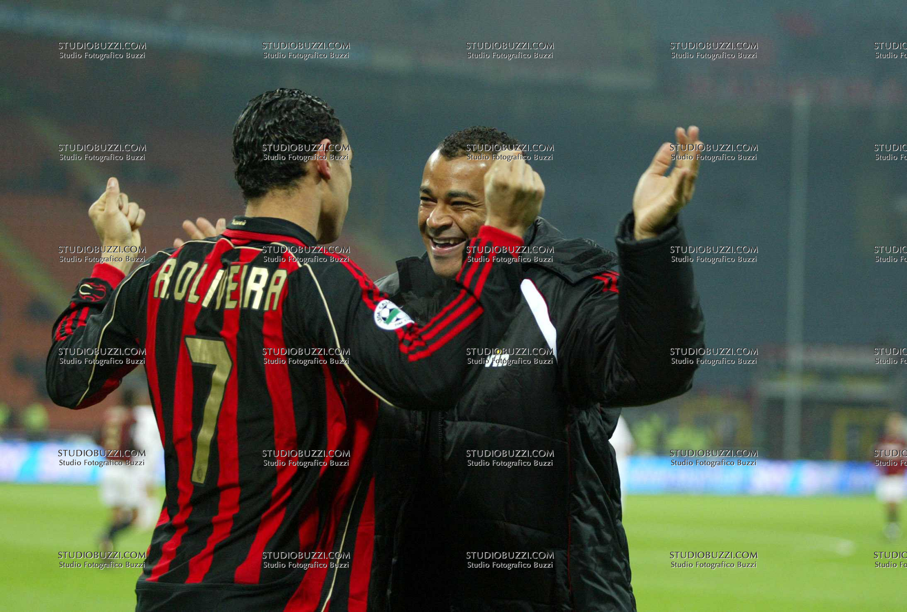 Evento: Coppa italia semi finale andata milan-roma 2-2; Argomento: Calcio; Periodo: 2006/07; Categoria: MILAN; Soggetto: RICARDO OLIVEIRA, CAFU; Nazione: BRASILE; Descrizione: ESULTANZA; Luogo: STADIO;