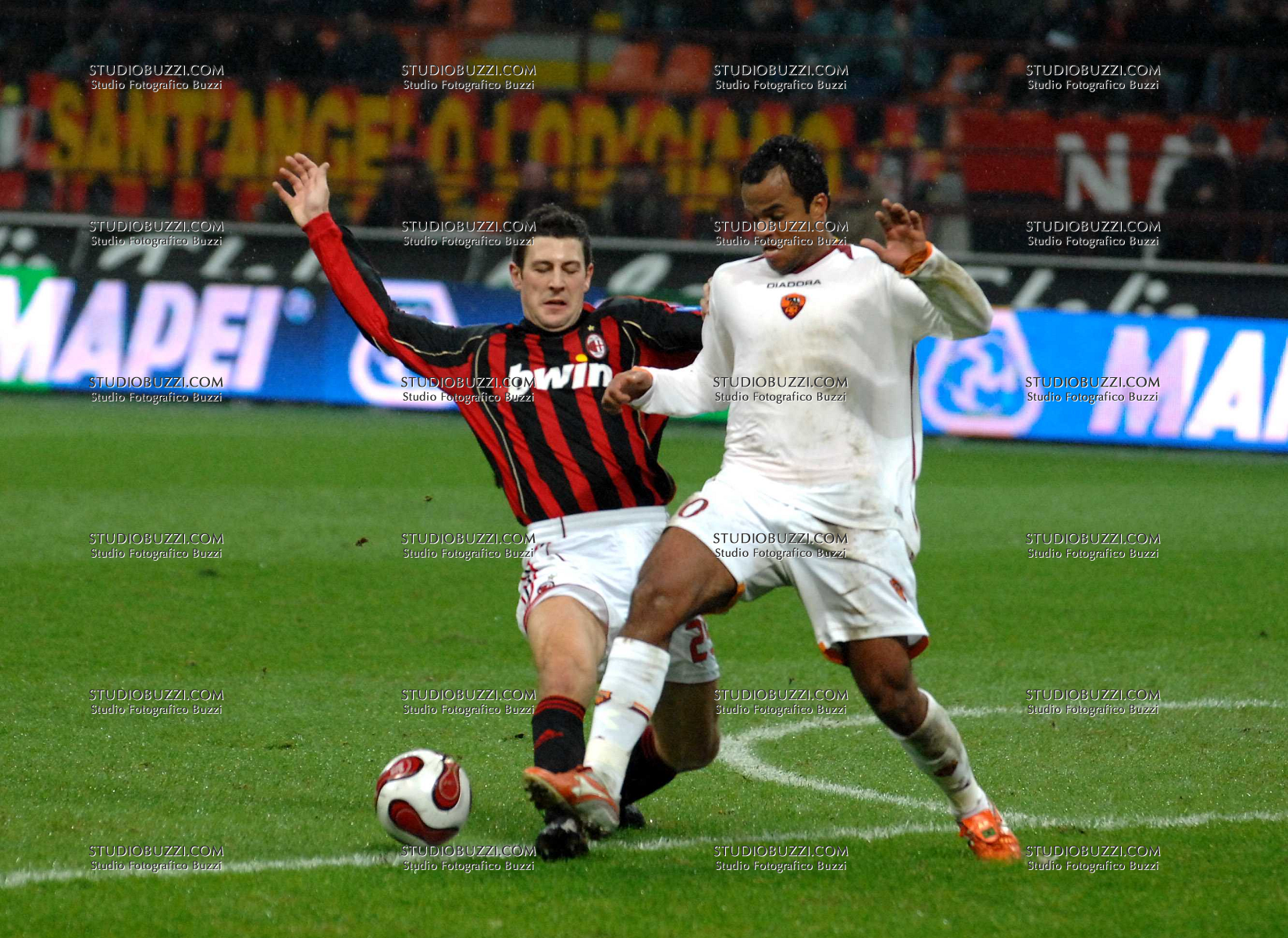 Evento: Coppa italia 2006/07 milan-roma 2-2; Argomento: Calcio; Periodo: 2006/07; Categoria: MILAN ROMA; Soggetto: DANIELE BONERA - AMANTINO MANCINI; Nazione: ITALIA BRASILE; Descrizione: CONTRASTO; Luogo: STADIO; Città: MILANO;
