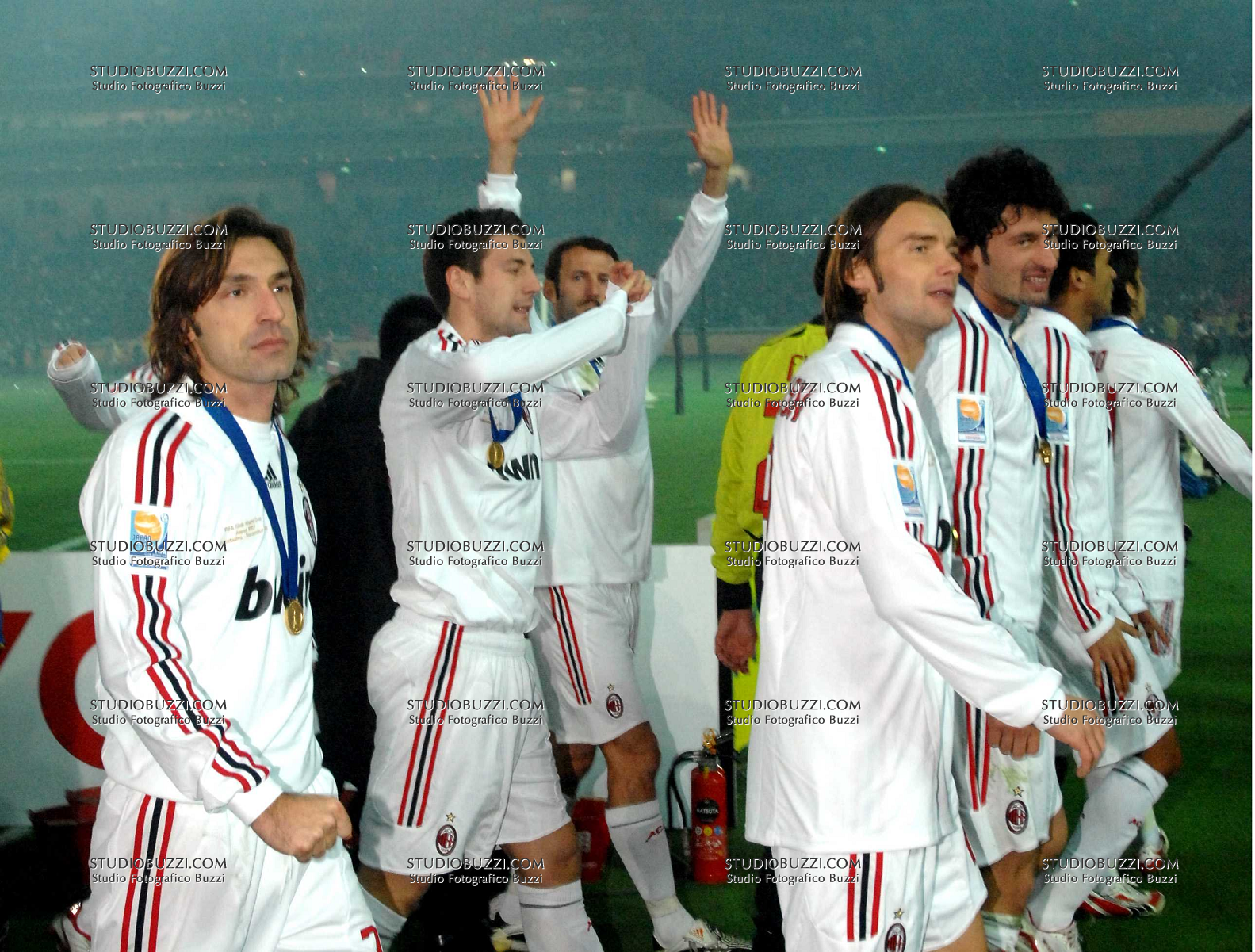 Evento: Fifa mondiale per club 2007 - finale boca juniors-milan 0-1; Argomento: Calcio; Periodo: 2007/08; Categoria: MILAN; Soggetto: SQUADRA: ANDREA PIRLO, DANIELE BONERA, MAREK JANKULOVSKI, KAKHABER KALADZE.; Nazione: ITALIA REPUBBLICA CECA GEORGIA; Descrizione: ESULTANZA; Luogo: STADIO; Città: YOKOHAMA;