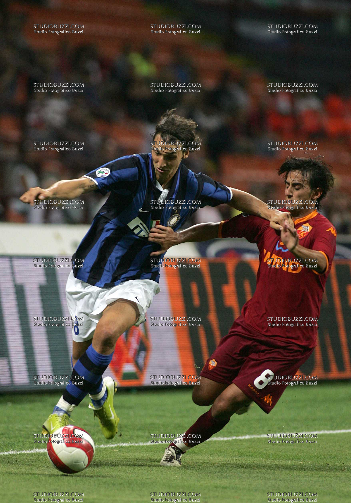 Evento: Supercoppa di lega italiana finale inter-roma 0-1; Argomento: Calcio; Periodo: 2007/08; Categoria: INTER - ROMA; Soggetto: ZLATAN IBRAHIMOVIC ALBERTO AQUILANI; Nazione: SVEZIA - ITALIA; Descrizione: CONTRASTO; Luogo: STADIO;