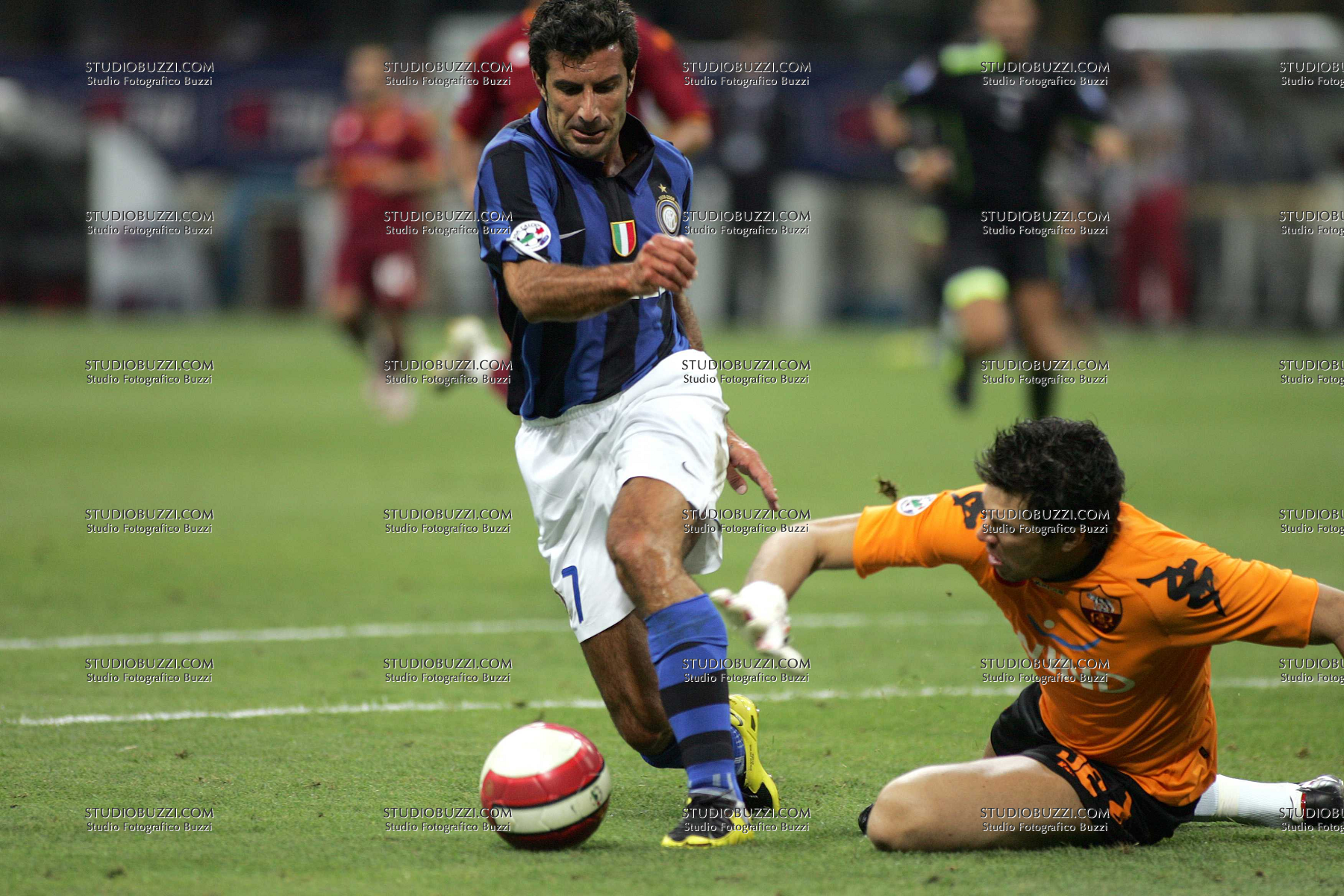 Evento: Supercoppa di lega italiana finale inter-roma 0-1; Argomento: Calcio; Periodo: 2007/08; Categoria: INTER - ROMA; Soggetto: LUIS FIGO DONI; Nazione: PORTOGALLO - BRASILE; Descrizione: CONTRASTO; Luogo: STADIO;