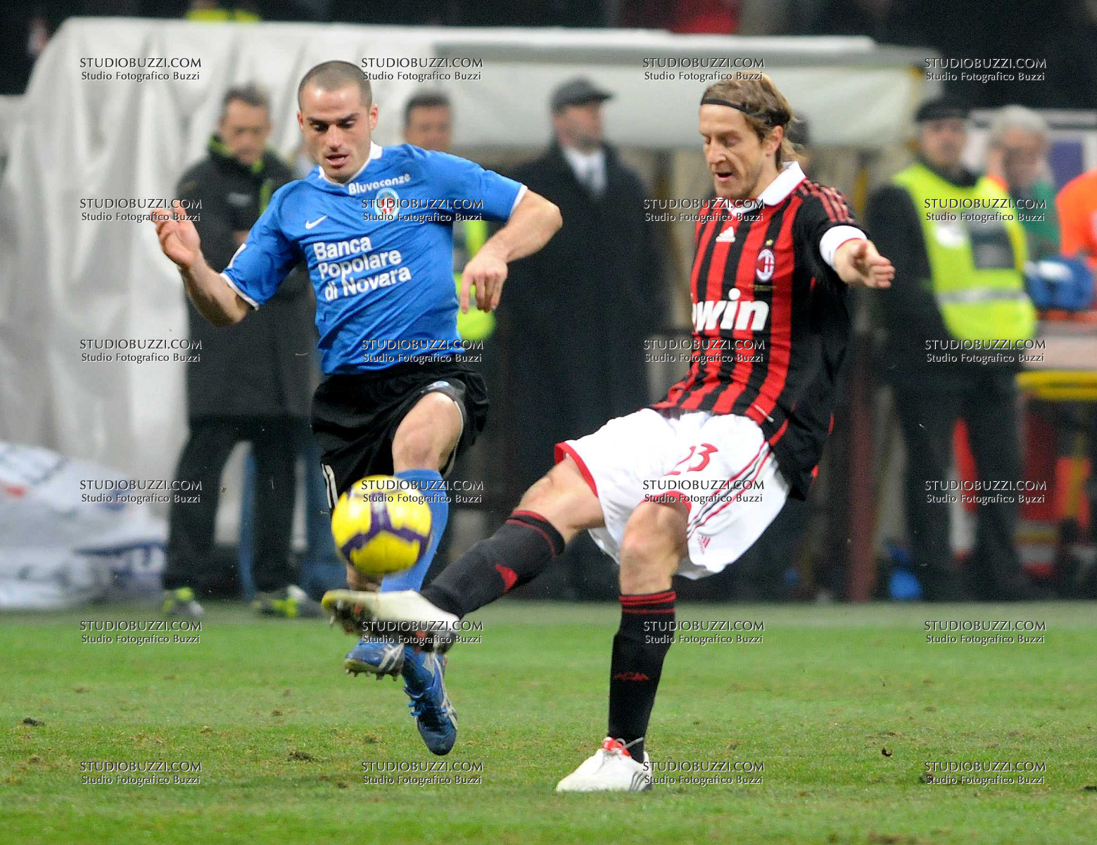 Evento: Coppa italia 2009/10 milan-novara 2-1; Argomento: Calcio; Periodo: 2009/10; Categoria: MILAN - NOVARA; Soggetto: PABLO ANDRES GONZALEZ - MASSIMO AMBROSINI; Nazione: ITALIA ARGENTINA; Descrizione: CONTRASTO; Luogo: STADIO; Città: MILANO;