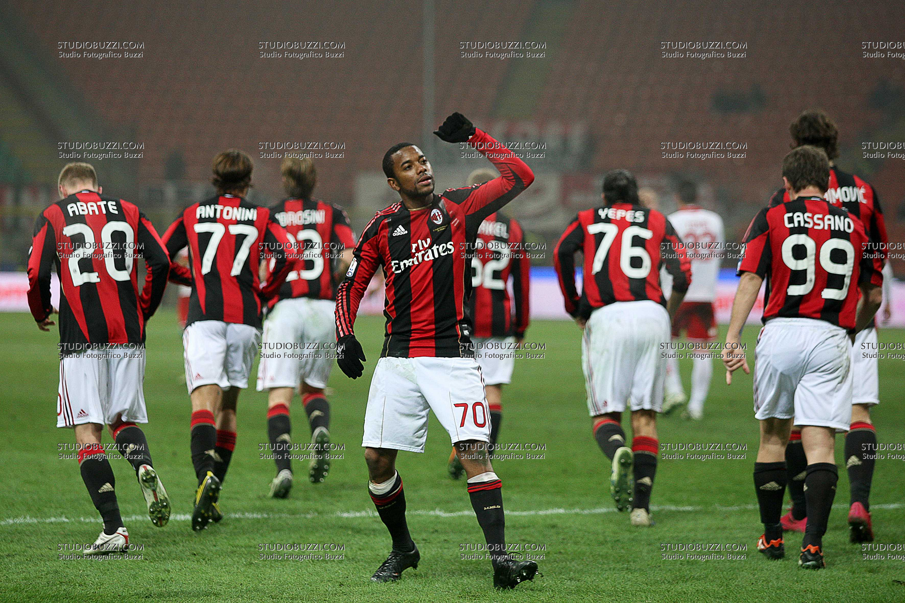 Evento: Coppa italia tim cup 2010-11 milan-bari 3-0; Argomento: Calcio; Periodo: 2010/11; Categoria: MILAN; Soggetto: SQUADRA: ROBINHO; Nazione: ITALIA - BRASILE; Descrizione: ESULTANZA; Luogo: STADIO;