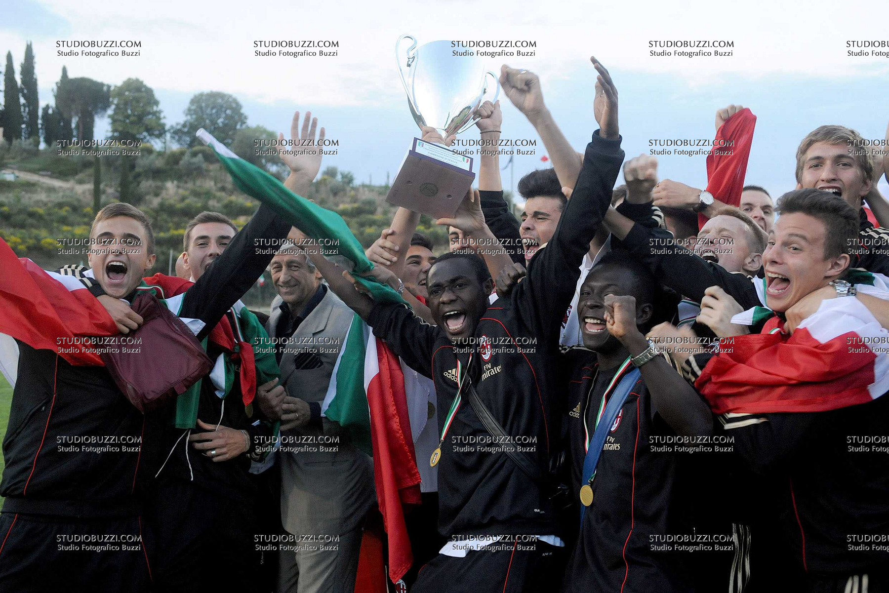 Evento: Finale campionato allievi nazionali milan-empoli 1-0; Argomento: Calcio; Periodo: 2010/11; Categoria: MILAN; Soggetto: SQUADRA; Nazione: ITALIA; Descrizione: POSA CON COPPA; Luogo: STADIO; Città: MONTEPULCIANO;