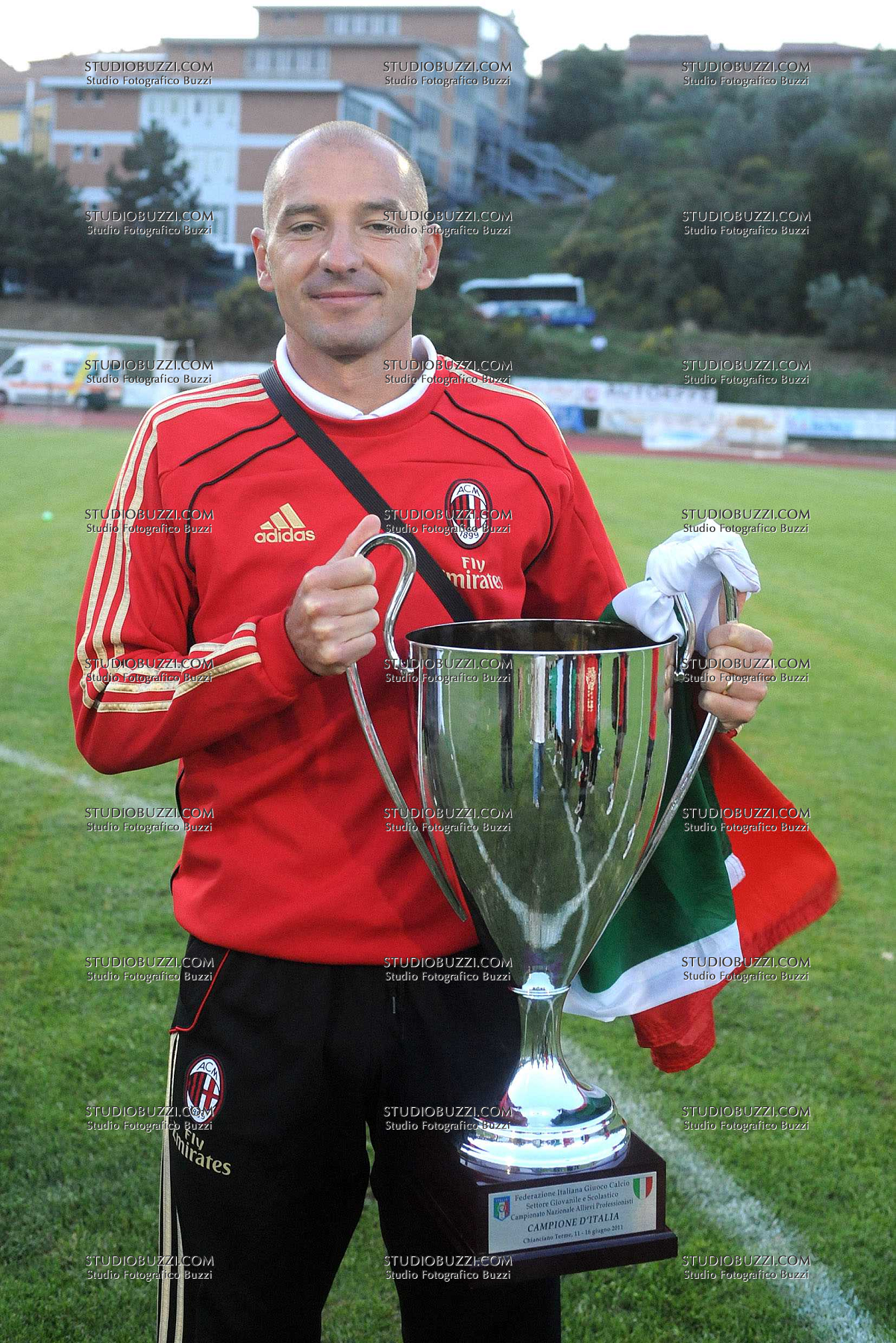 Evento: Finale campionato allievi nazionali milan-empoli 1-0; Argomento: Calcio; Periodo: 2010/11; Categoria: MILAN; Soggetto: CESARE BEGGI; Nazione: ITALIA; Descrizione: POSA CON COPPA; Luogo: STADIO; Città: MONTEPULCIANO;