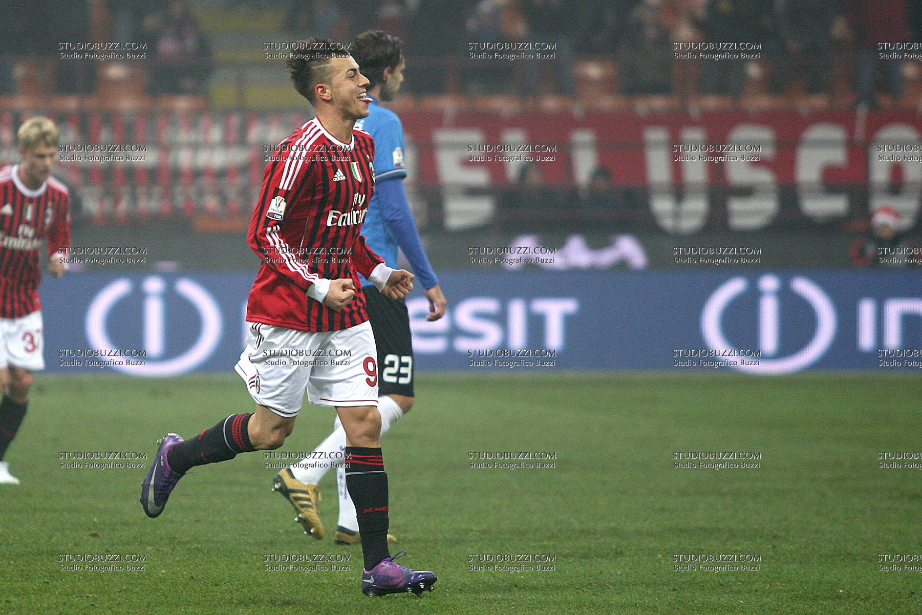 Evento: Stagione 2011-12 coppa italia ottavi di finale milan-novara 2-1; Argomento: Calcio; Periodo: 2011/12; Categoria: MILAN; Soggetto: STEPHAN EL SHAARAWY; Nazione: ITALIA; Descrizione: ESULTANZA; Luogo: STADIO;