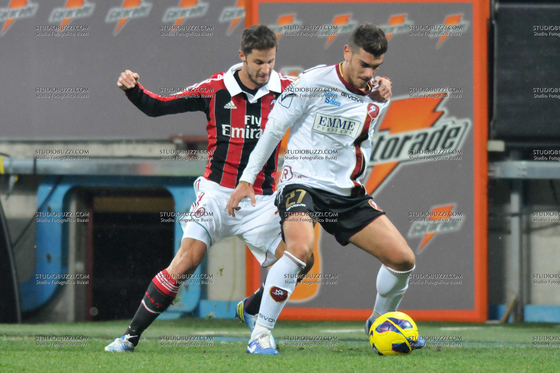 Evento: Coppa italia 2012-13 milan-reggina 3-0; Argomento: Calcio; Periodo: 2012/13; Categoria: MILAN-REGGINA; Soggetto: LUCA ANTONINI, MATTEO D'ALESSANDRO; Nazione: ITALIA; Descrizione: CONTRASTO; Luogo: STADIO; Città: MILANO;