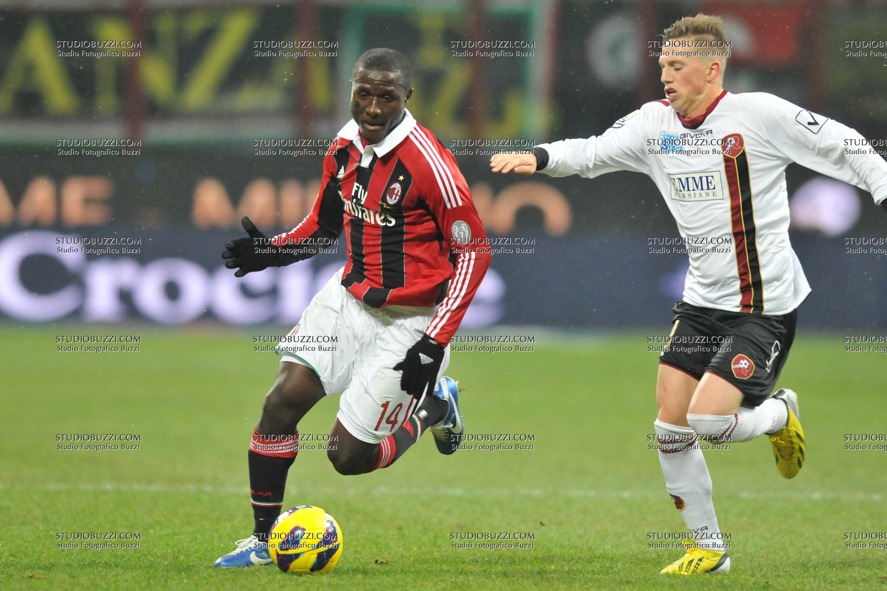 Evento: Coppa italia 2012-13 milan-reggina 3-0; Argomento: Calcio; Periodo: 2012/13; Categoria: MILAN-REGGINA; Soggetto: RODNEY STRASSER, MANUEL FISCHNALLER; Nazione: SIERRA LEONE-ITALIA; Descrizione: CONTRASTO; Luogo: STADIO; Città: MILANO;