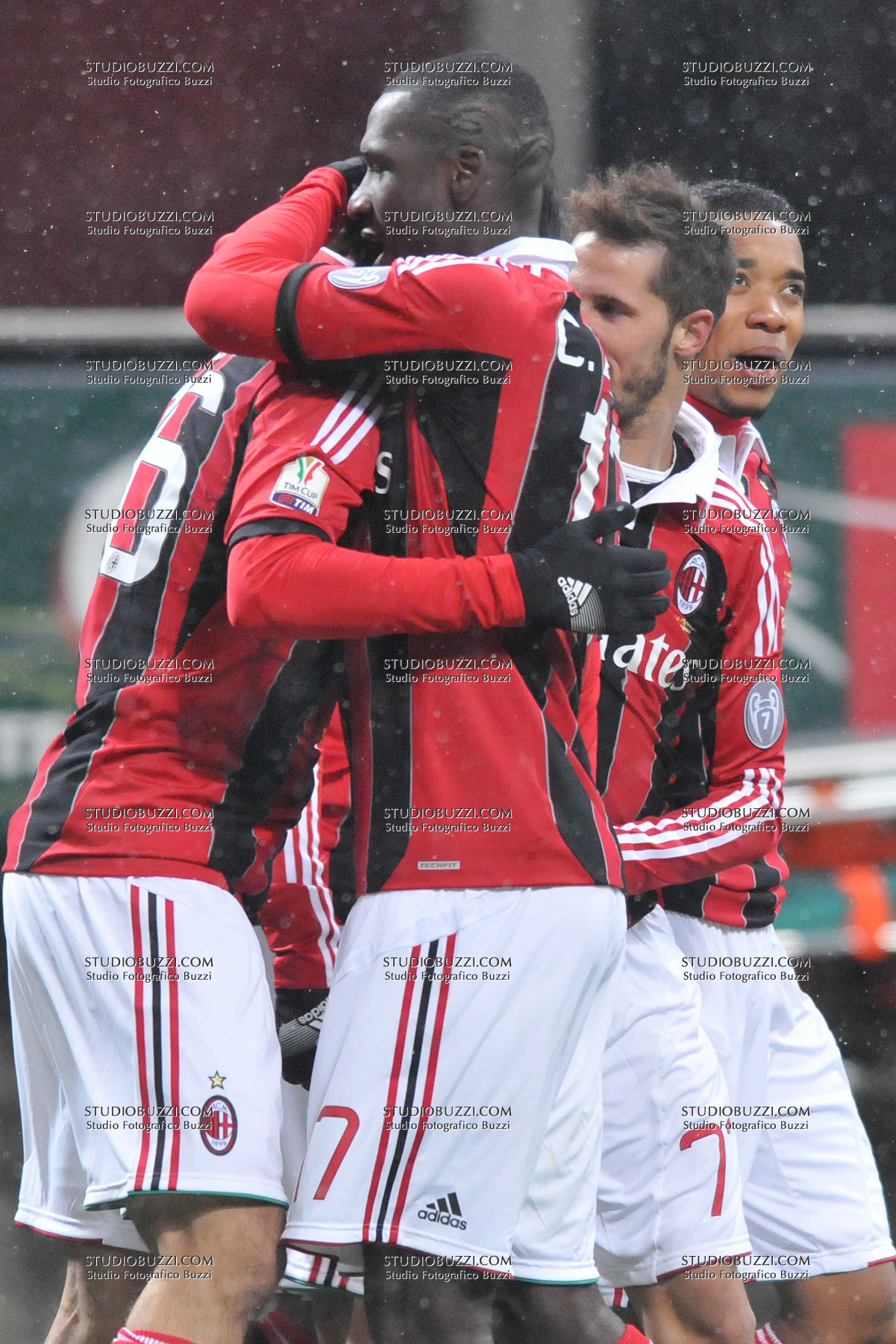 Evento: Coppa italia 2012-13 milan-reggina 3-0; Argomento: Calcio; Periodo: 2012/13; Categoria: MILAN; Soggetto: MARIO YEPES, CHRISTIAN ZAPATA, URBY EMANUELSON, LUCA ANTONINI; Nazione: COLOMBIA-OLANDA-ITALIA; Descrizione: ESULTANZA; Luogo: STADIO; Città: MILANO;