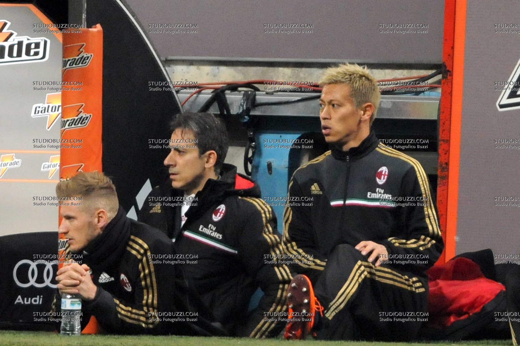 Evento: Coppa italia tim 2013-14 milan-udinese 1-2; Argomento: Calcio; Periodo: 2013/14; Categoria: MILAN; Soggetto: PANCHINA, IGNAZIO ABATE, BRUNO DOMINICI, KEISUKE HONDA; Nazione: ITALIA GIAPPONE; Descrizione: AZIONE; Luogo: STADIO; Città: MILANO;