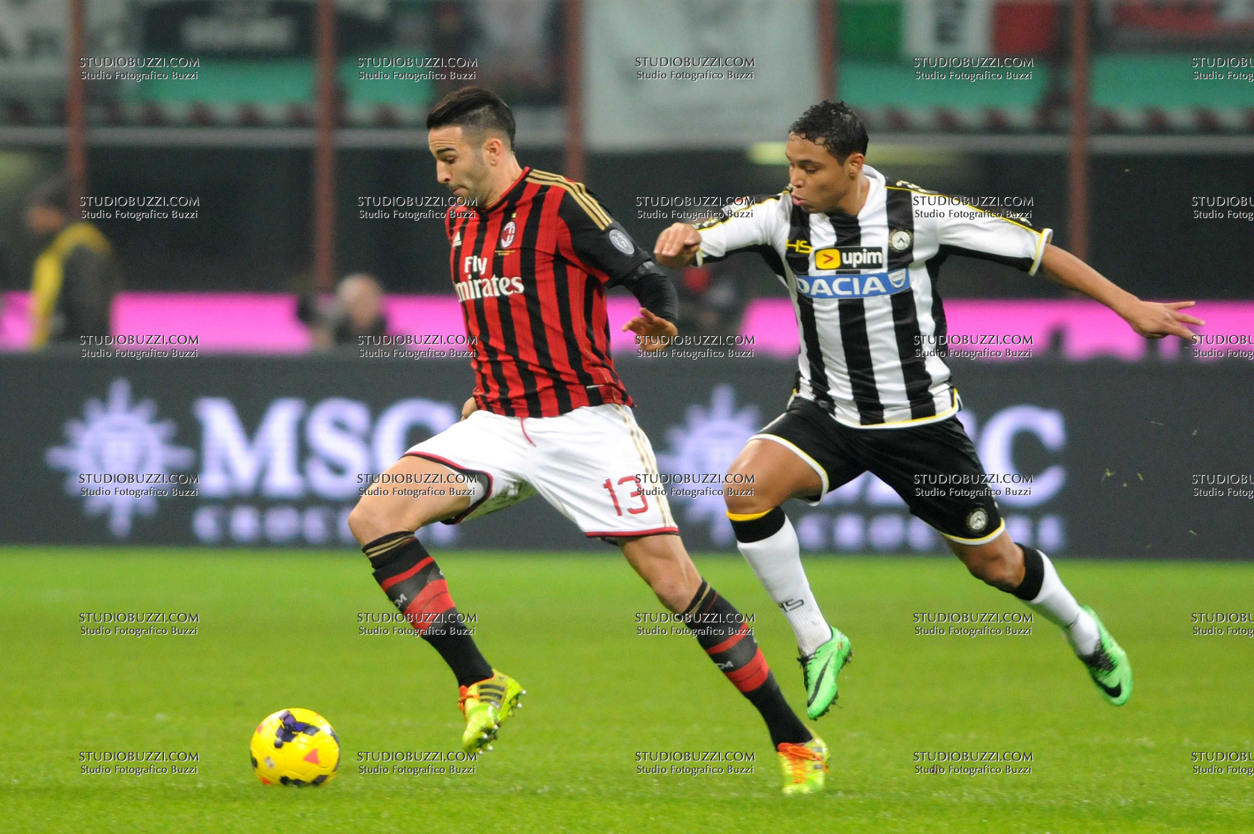 Evento: Coppa italia tim 2013-14 milan-udinese 1-2; Argomento: Calcio; Periodo: 2013/14; Categoria: MILAN - UDINESE; Soggetto: ADIL RAMI, LUIS MURIEL; Nazione: FRANCIA COLOMBIA; Descrizione: CONTRASTO; Luogo: STADIO; Città: MILANO;