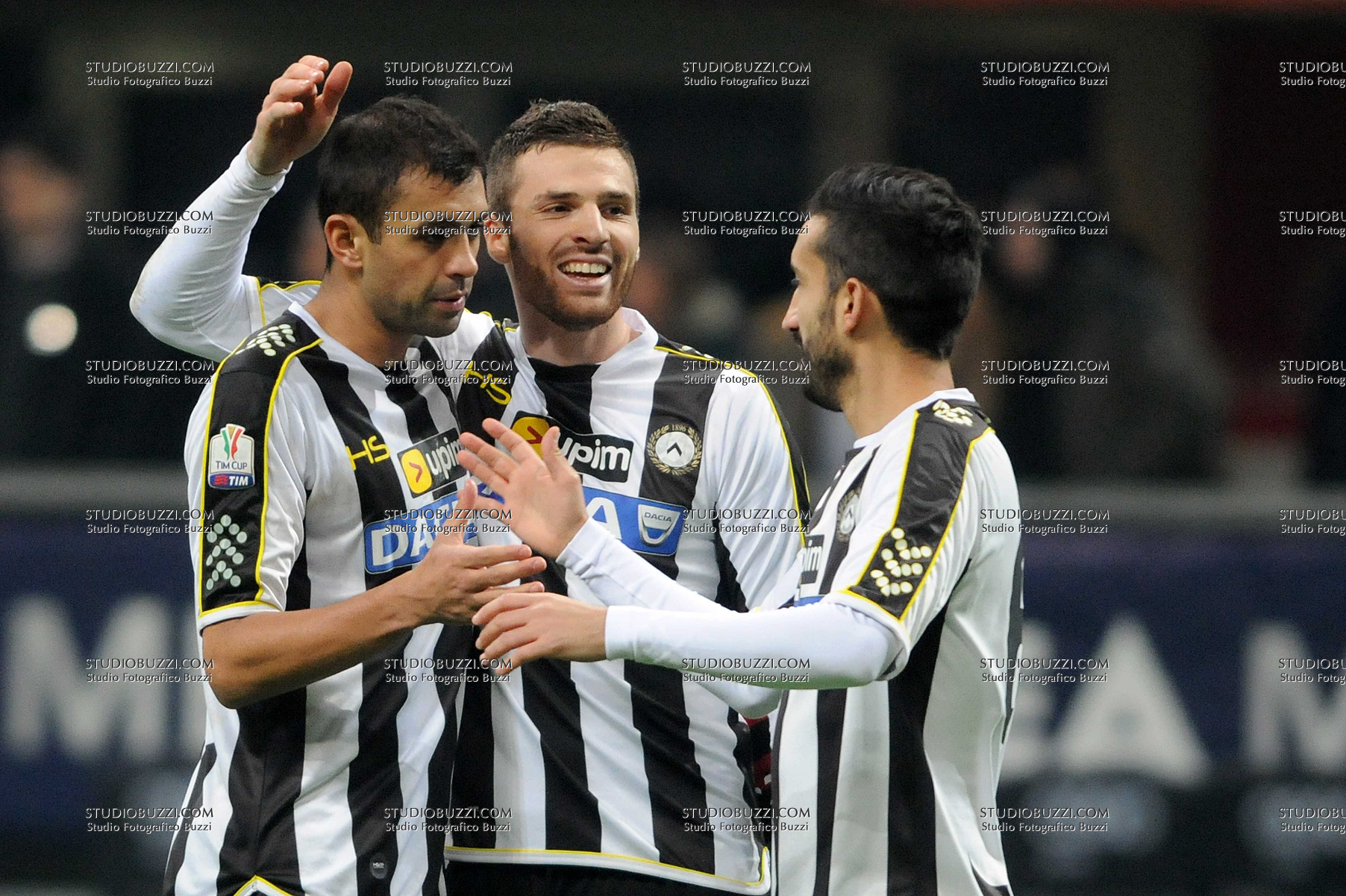 Evento: Coppa italia tim 2013-14 milan-udinese 1-2; Argomento: Calcio; Periodo: 2013/14; Categoria: UDINESE; Soggetto: DANILO, THOMAS HERTAUX, GIAMPIERO PINZI; Descrizione: ESULTANZA; Luogo: STADIO; Città: MILANO;