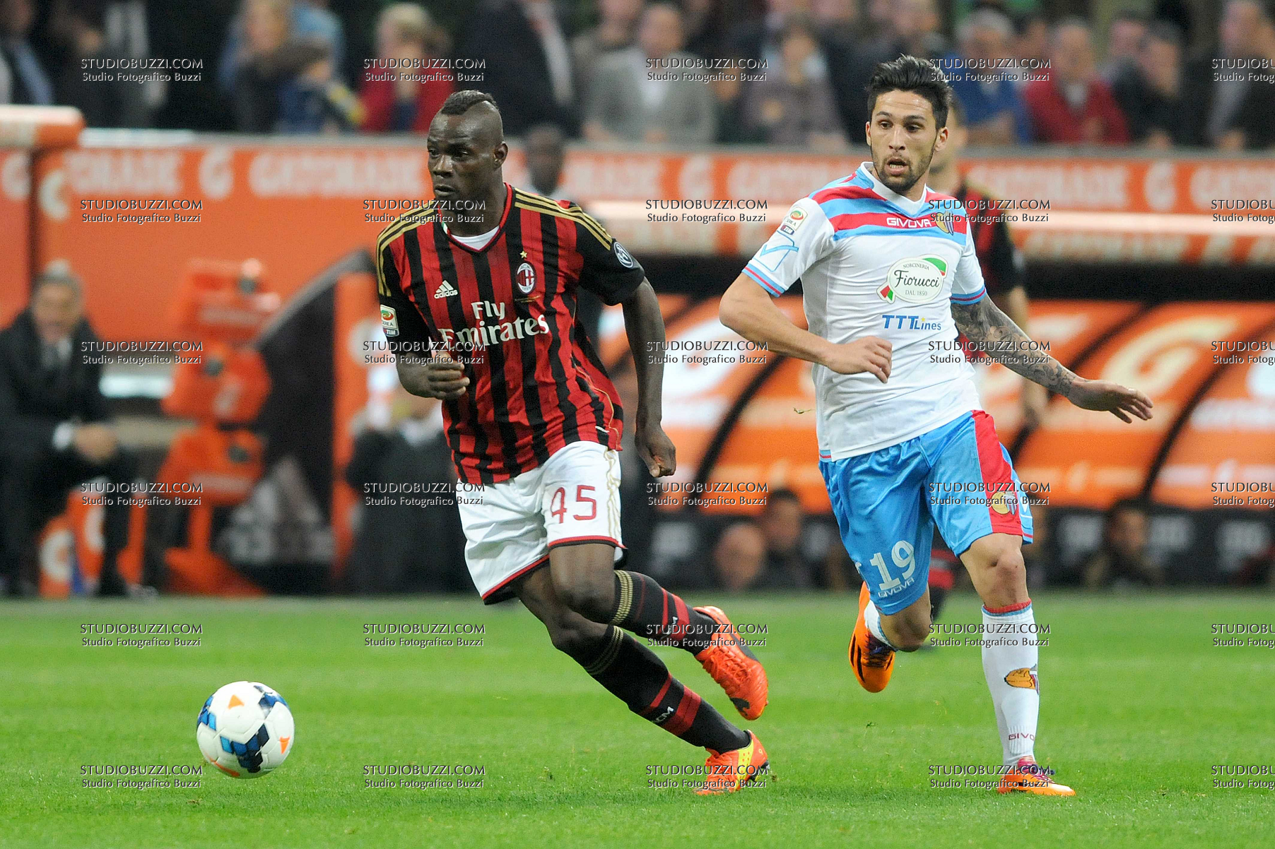 Evento: Campionato serie a 2013-14 milan-catania 1-0; Argomento: Calcio; Periodo: 2013/14; Categoria: MILAN - CATANIA; Soggetto: MARIO BALOTELLI, LUCAS CASTRO; Nazione: ARGENTINA ITALIA; Descrizione: CONTRASTO; Città: MILANO;