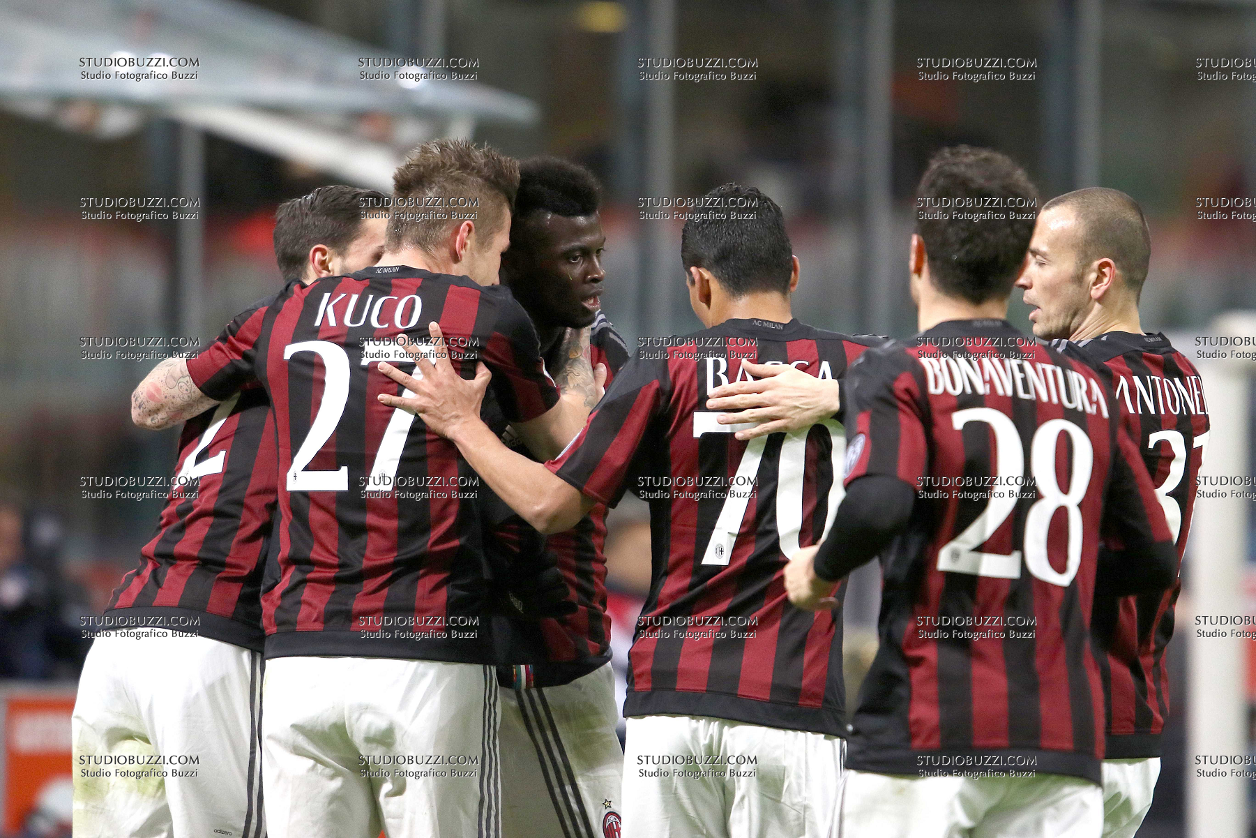 Evento: Coppa italia tim 2015-16 milan-carpi 2-1; Argomento: Calcio; Periodo: 2015/16; Categoria: MILAN; Soggetto: SQUADRA, MBAYE NIANG; Nazione: Studio Buzzi; Descrizione: ESULTANZA; Luogo: STADIO; Città: MILANO;