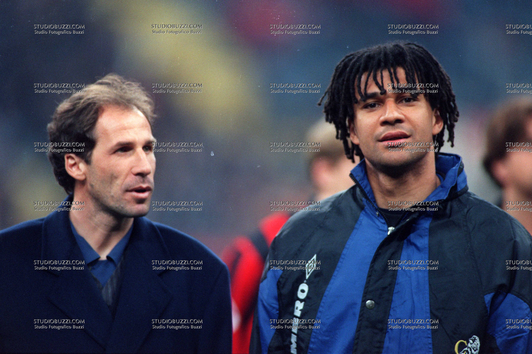 Evento: Stagione 1996-97 amichevole milan-chelsea; Argomento: Calcio; Periodo: 1996/97; Categoria: MILAN - CHELSEA; Soggetto: FRANCO BARESI, RUUD GULLIT; Descrizione: PRIMO PIANO; Luogo: STADIO; Città: MILANO;