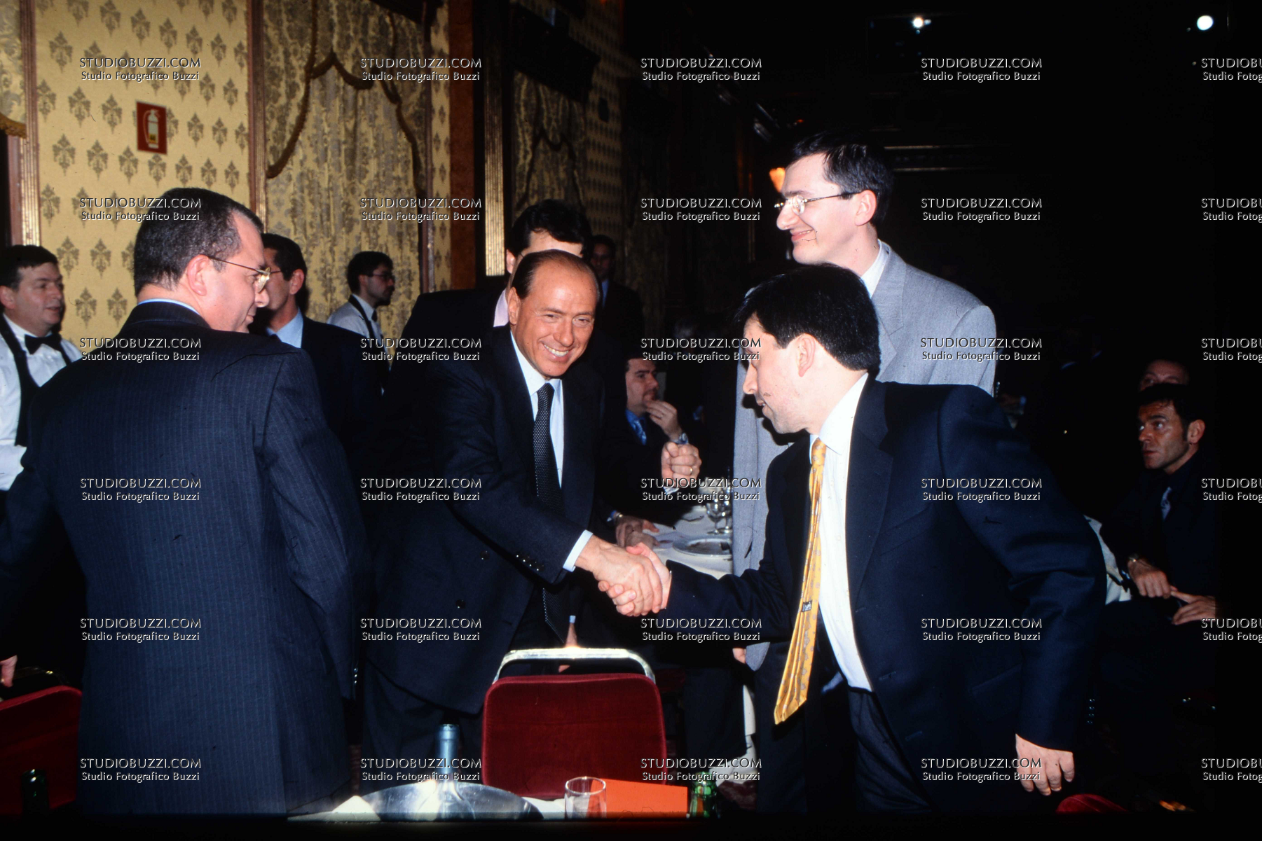 Evento: Stagione 1998-99 cena natale; Argomento: Calcio; Periodo: 1998/99; Categoria: MILAN; Soggetto: SILVIO BERLUSCONI, ALDO HUGO SALLUSTRO, FABRIZIO MELEGARI; Descrizione: BORGHESE; Luogo: INTERNO; Città: MILANO;