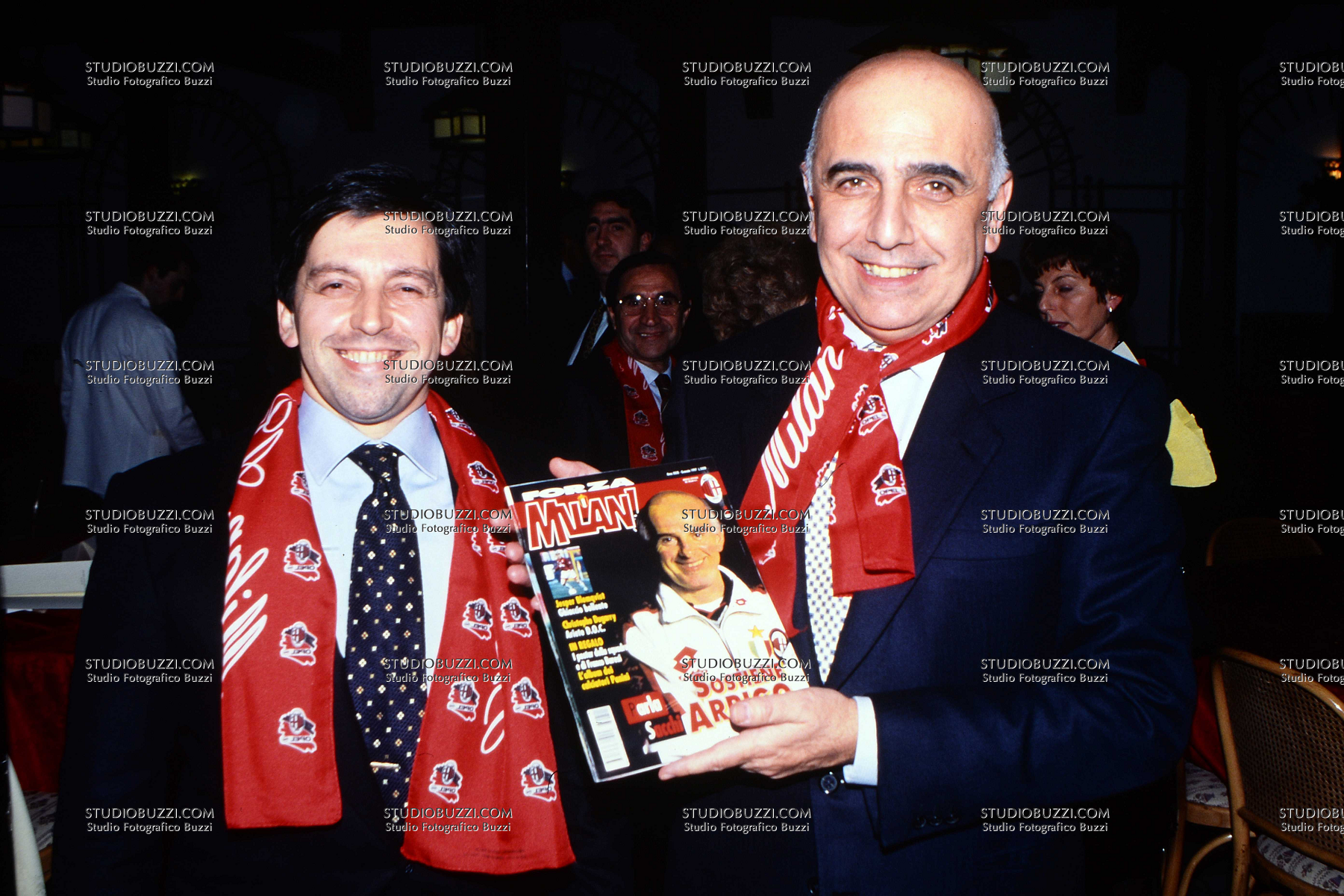 Evento: Stagione 1996-97 cena natale; Argomento: Calcio; Periodo: 1996/97; Categoria: MILAN - PANINI; Soggetto: FABRIZIO MELEGARI, ADRIANO GALLIANI; Descrizione: BORGHESE; Luogo: INTERNO;