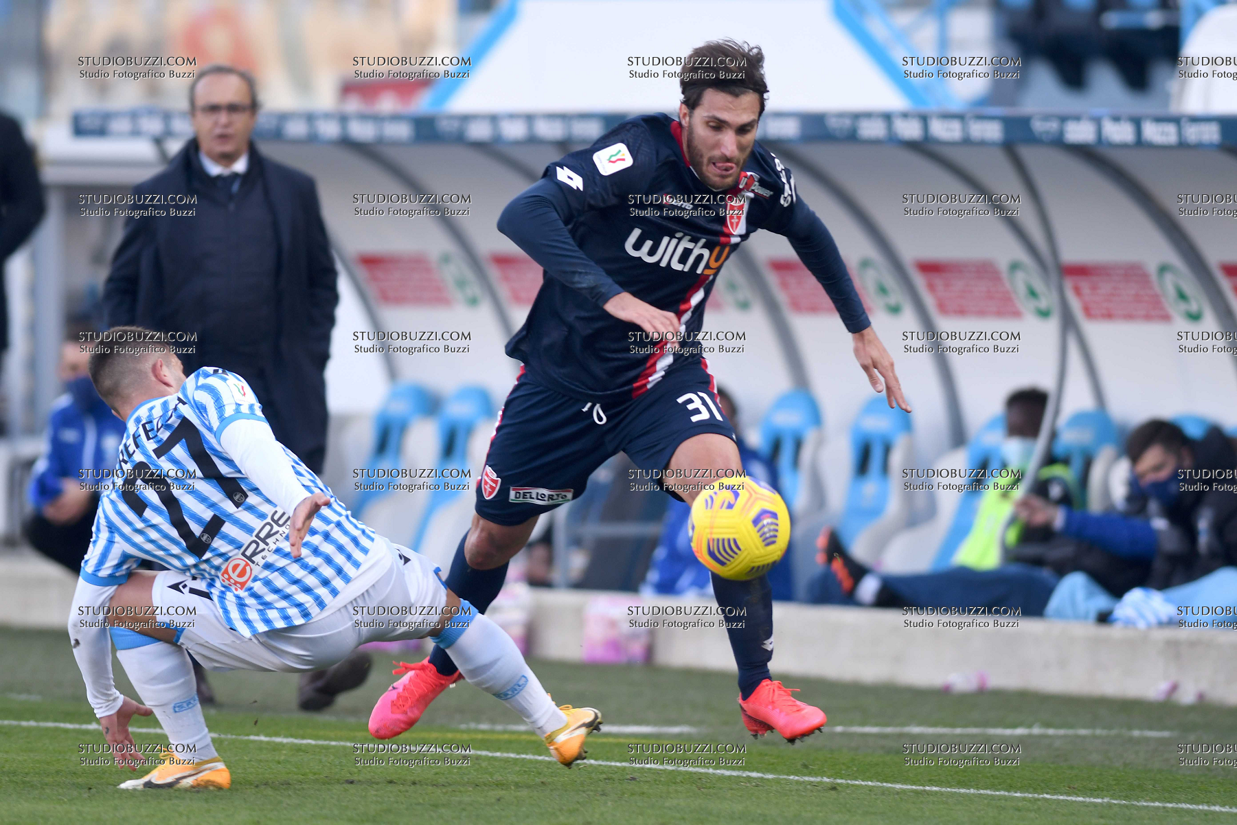 Evento: Coppa italia 2020-21 spal-monza 2-0; Argomento: Calcio; Periodo: 2020/21; Categoria: AC MONZA; Soggetto: MARIO SAMPIRISI; Descrizione: CONTRASTO; Luogo: STADIO; Città: FERRARA;