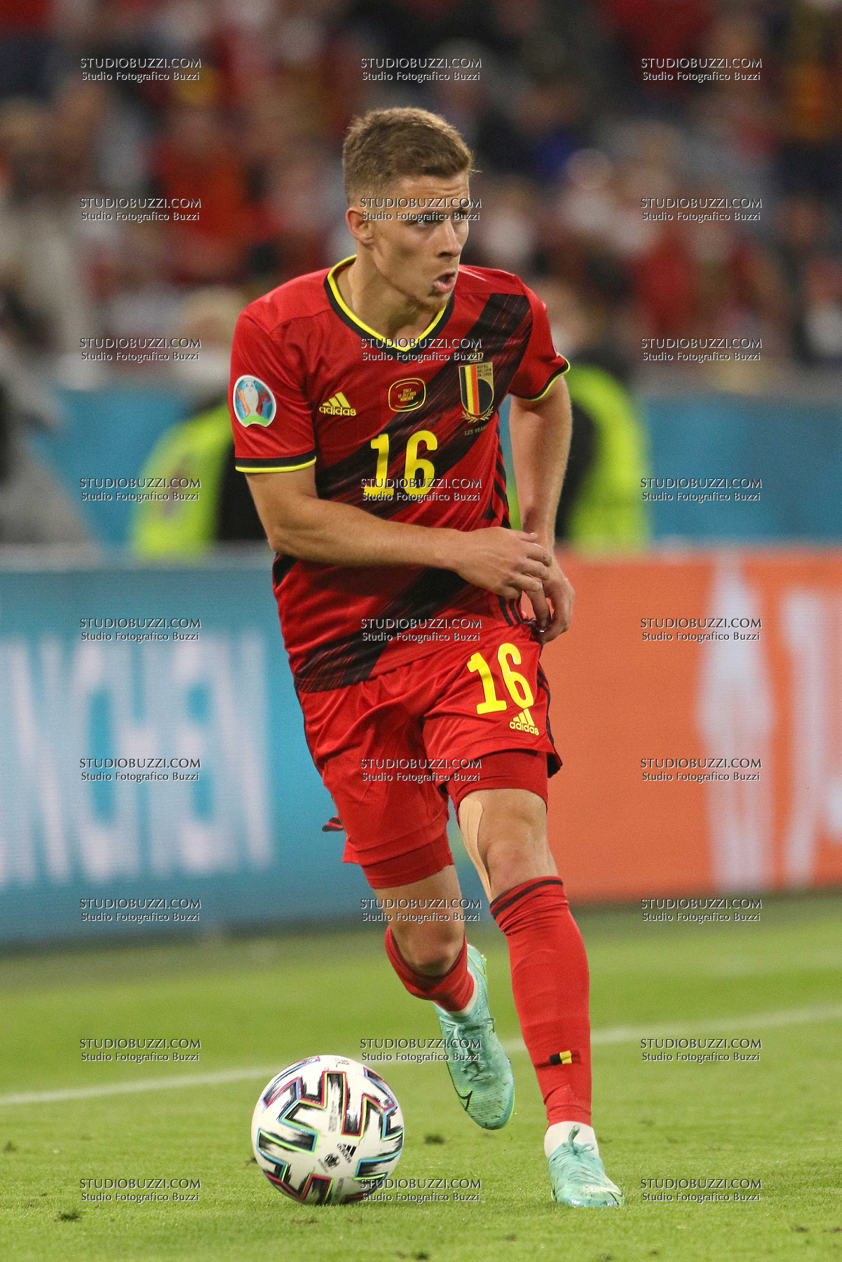 Evento: Euro 2020 quarti di finale belgio-italia 1-2; Argomento: Calcio; Periodo: 2020/21; Categoria: BELGIO; Soggetto: THORGAN HAZARD, Belgio, UEFA EURO 2020, Quarter Final, Belgium vs Italy 1-2, Munich; Nazione: Studio Buzzi; Descrizione: AZIONE; Luogo: STADIO; Città: MONACO DI BAVIERA;