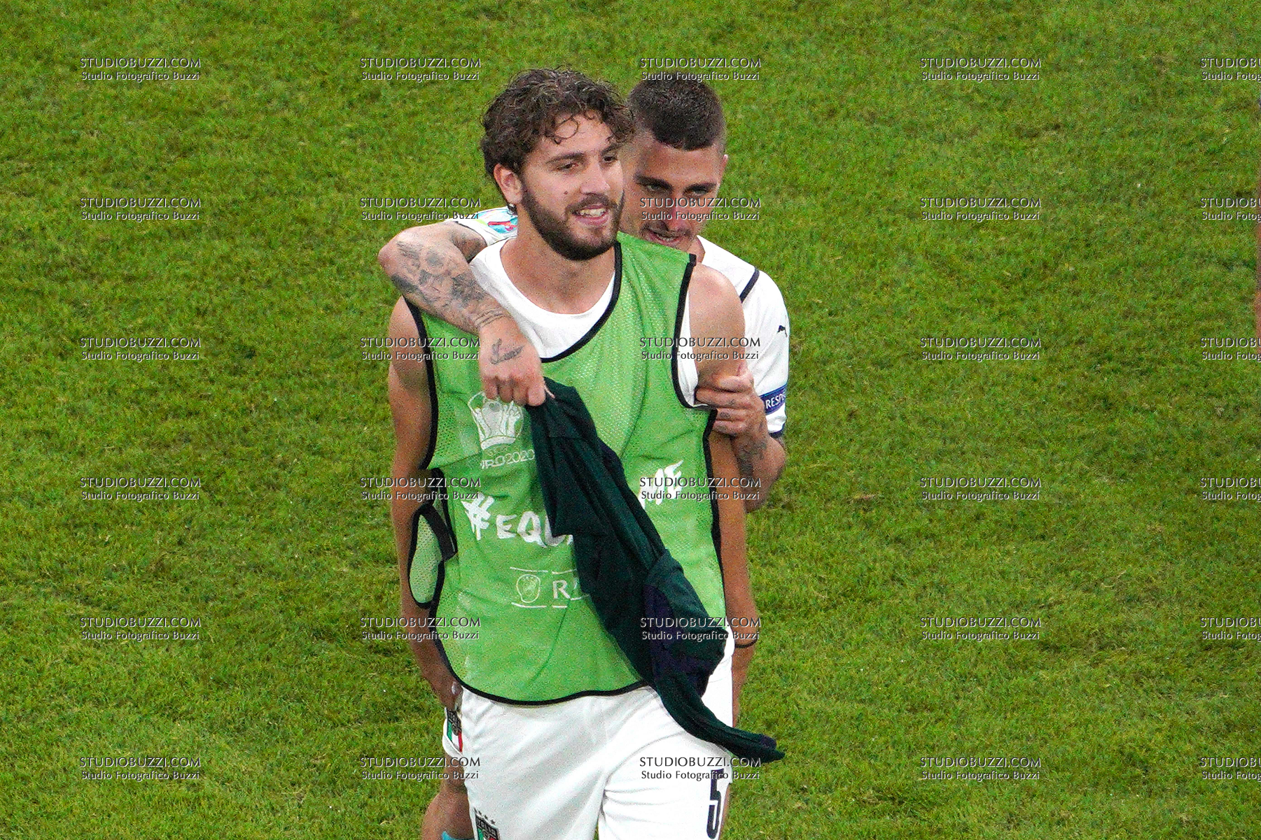 Evento: Euro 2020 quarti di finale belgio-italia 1-2; Argomento: Calcio; Periodo: 2020/21; Categoria: ITALIA ITALY; Soggetto: Euro 2020, Quarter Final, Belgium Belgio-Italy Italia 1-2, MANUEL LOCATELLI, MARCO VERRATTI CELEBRATION; Descrizione: ESULTANZA; Luogo: STADIO; Città: MONACO DI BAVIERA;