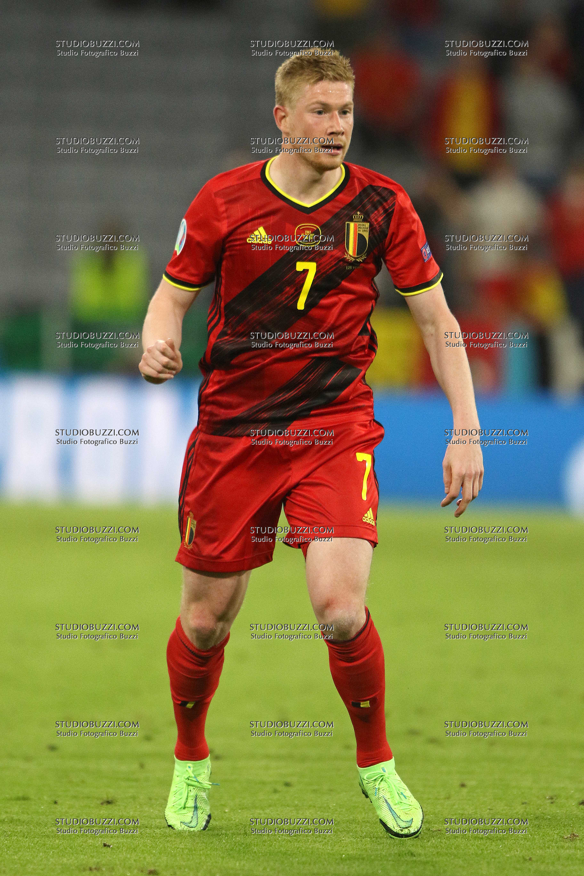 Evento: Euro 2020 quarti di finale belgio-italia 1-2; Argomento: Calcio; Periodo: 2020/21; Categoria: BELGIO; Soggetto: KEVIN DE BRUYNE, Belgio, UEFA EURO 2020, Quarter Final, Belgium vs Italy 1-2, Munich; Nazione: Studio Buzzi; Descrizione: AZIONE; Luogo: STADIO; Città: MONACO DI BAVIERA;
