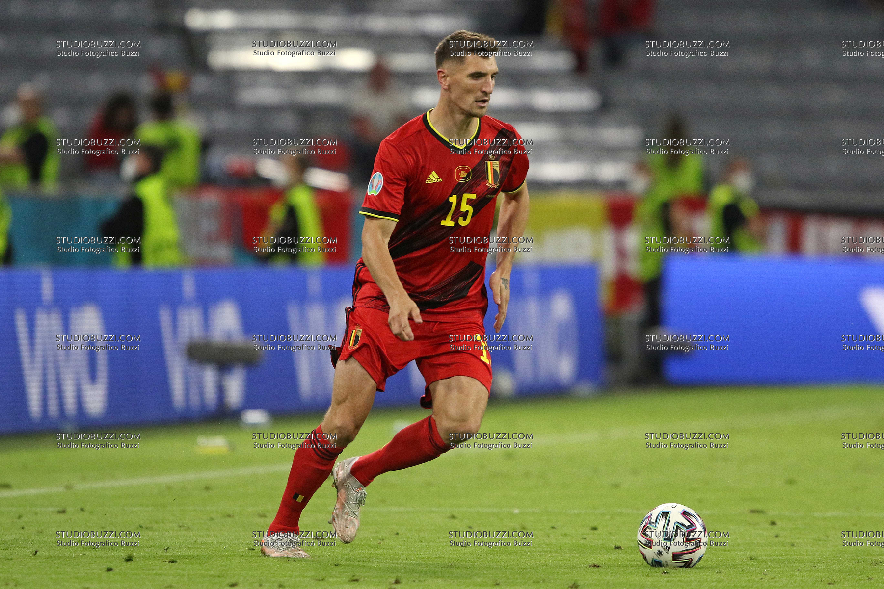 Evento: Euro 2020 quarti di finale belgio-italia 1-2; Argomento: Calcio; Periodo: 2020/21; Categoria: BELGIO; Soggetto: THOMAS MEUNIER, Belgio, UEFA EURO 2020, Quarter Final, Belgium vs Italy 1-2, Munich; Nazione: Studio Buzzi; Descrizione: AZIONE; Luogo: STADIO; Città: MONACO DI BAVIERA;